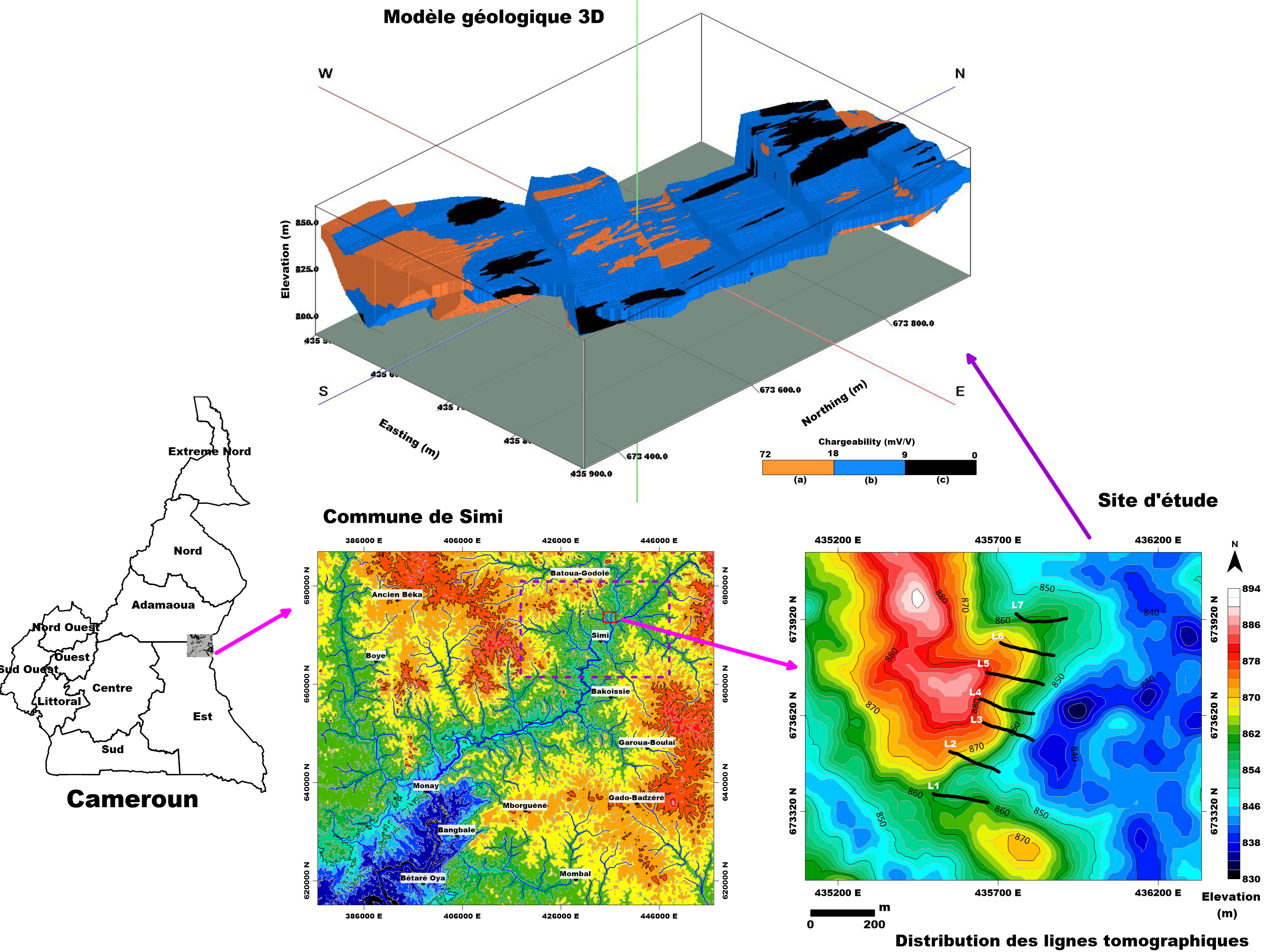 Le projet DELO a pour objectif de contribuer à l’exploration et la gestion durable de l’eau à Yaoundé et ses environs (Cameroun). Une première phase de cartographie, s’appuyant sur une étude combinant les méthodes de courant continu et de polarisation provoquée pour la modélisation géologique 3D dans la localité de Simi (Adamaoua-Cameroun) est aujourd’hui disponible. Ces travaux, réalisés par Mohamed Moustapha Ndam Njikam ont été en partie publiés dans Geophysical Prospecting en 2023.