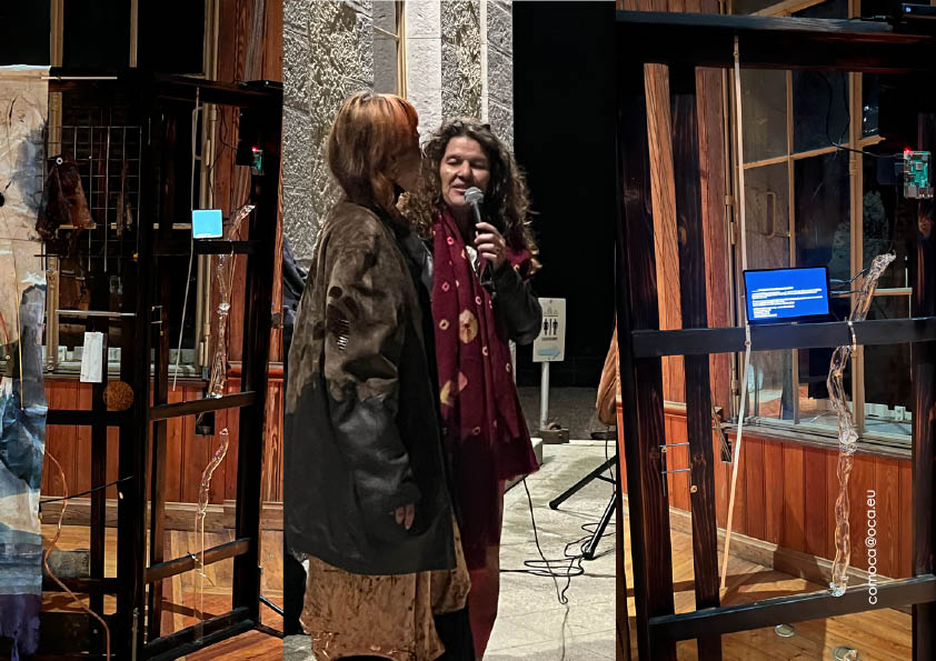 Enfin, autour de la thématique de l’eau et du liquide amniotique, le duo d’artistes Jimmy Bourry et Charlotte Gautier Van Tour a conçu une installation et une performance OSMOS. Inspirés de structures marines, des vases remplis d’eau et reliés à des capteurs deviennent des portails sensoriels, établissant une relation mémorielle entre les océans et le corps humain. La performance OSMOS invite le public à entrer en contact avec l’eau et à se souvenir de ses origines.