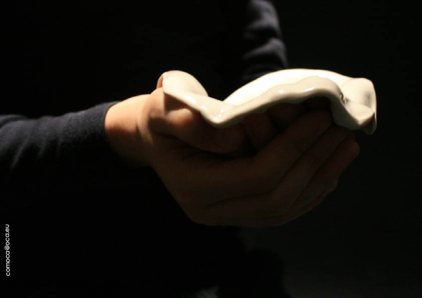 Avec la série YAD, Donia Ouassit explore l’empreinte des mains. YADI 1 et YADI 3, moulures recueillant l’eau, invitent au partage autour du geste, du rite et de la transmission.